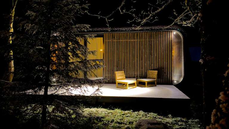 Die Mountain Cabin by the river - Base Camp Medvědín bietet eine Gemeinschaftslounge und eine Terrasse.