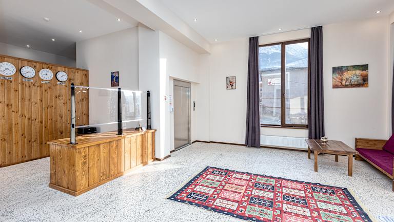 Mountain House Kazbegi ist ein Hotel mit Übernachtungsmöglichkeiten, das ein Garten, eine Terrasse und ein Restaurant bietet. Es verfügt über eine rund um die Uhr besetzte Rezeption, einen Tourenschalter und Flughafentransfers.