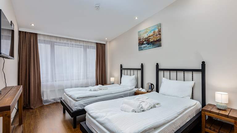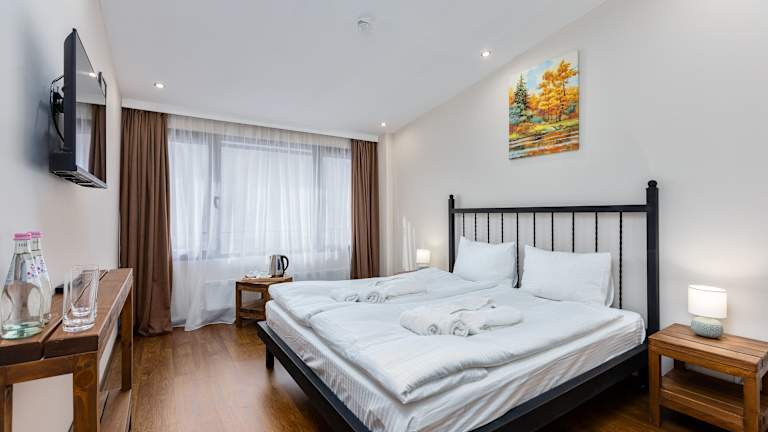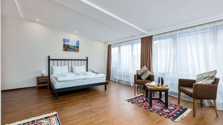 Jedes Zimmer ist mit einem Kleiderschrank, einem Balkon mit Bergblick, einem eigenen Badezimmer, einem Flachbild-TV, Bettwäsche und Handtüchern ausgestattet. Einige Wohneinheiten bieten Stadtblick und alle Zimmer sind mit einem Wasserkocher ausgestattet.
