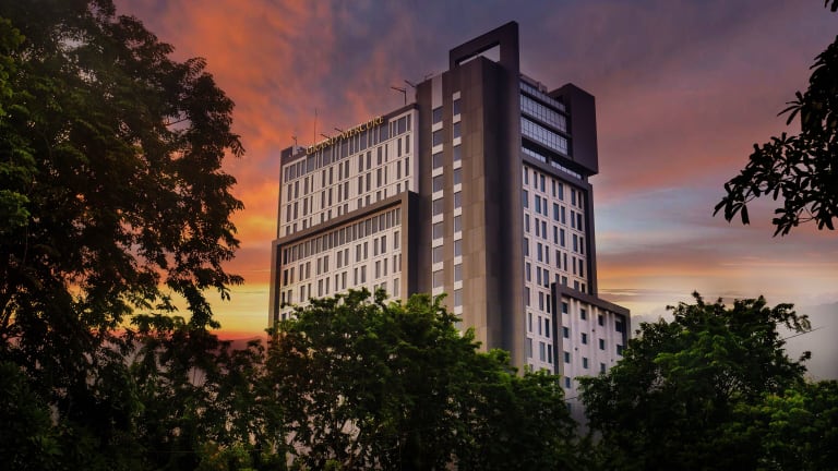 Das Hotel Movenpick Surabaya City befindet sich in Surabaya, 6,7 km vom Denkmal Bambu Runcing entfernt. Zu den nahegelegenen Sehenswürdigkeiten zählen das U-Boot Monument Kapal Selam (6,9 km) und der Bahnhof Gubeng (7,3 km). Der Flughafen Juanda ist 11 km entfernt.