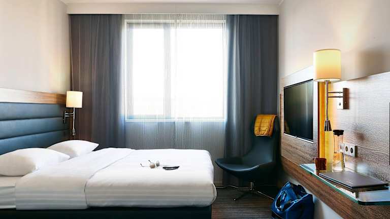 Die Zimmer sind mit einer individuell regulierbaren Klimaanlage und Heizung ausgestattet. Jedes Zimmer verfügt über ein Queensizebett und ein Sofabett sowie über einen Safe, einen Schreibtisch, ein Telefon, ein TV-Gerät und gratis W-LAN. Die Badezimmer enthalten eine Dusche und eine Badewanne sowie kostenlose Pflegeprodukte und Handtücher. Es gibt auch rollstuhlgerechte Zimmer mit barrierefreien Badezimmern.