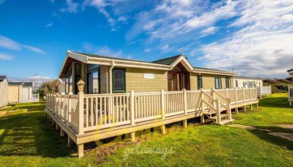 MP768 - Camber Sands Holiday Park - Huge Lodge - Small dog friendly - sleeps 8 bietet eine Terrasse sowie Zugang zu einem Restaurant und einer Bar.