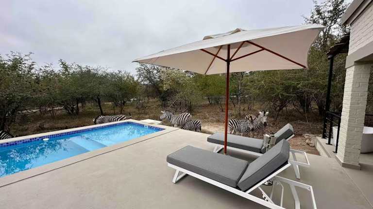 Erleben Sie einen luxuriösen Aufenthalt in der MLRTH. Luxury Safari Villa im Marloth Park. Genießen Sie die Privatsphäre Ihrer eigenen Villa mit eigenem Pool und Balkon, während Sie den atemberaubenden Blick auf den Garten genießen. Die Unterkunft bietet Ihnen eine voll ausgestattete Küche, komfortable Schlafzimmer und moderne Badezimmer. Entspannen Sie im Whirlpool oder schwimmen Sie im Außenpool. Die Umgebung lädt zu Aktivitäten wie Wandern und Radfahren ein. Entdecken Sie die Tierwelt im Lionspruit Game Reserve oder spielen Sie eine Runde Golf im Leopard Creek Country Club. Der internationale Flughafen Kruger Mpumalanga ist nur eine kurze Fahrt entfernt.