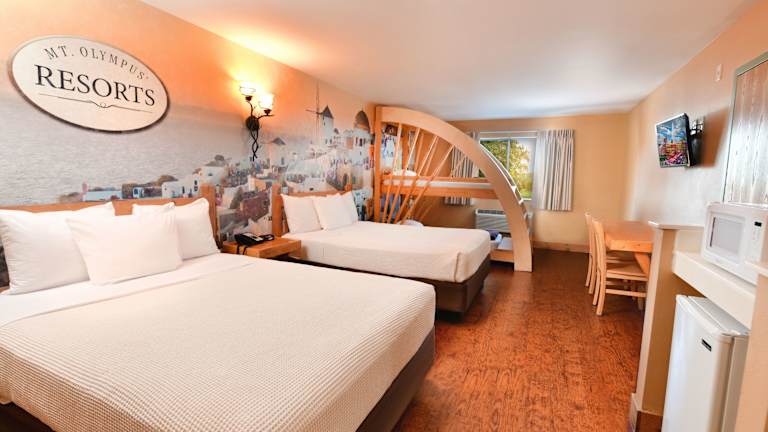 Das Mt. Olympus Water & Theme Park Resort in Wisconsin Dells ist das perfekte Reiseziel für Familien, die Spaß und Abenteuer suchen. Mit dem Eintritt in den Wasser- und Freizeitpark können Sie unvergessliche Erinnerungen schaffen und eine Vielzahl von Attraktionen und Fahrgeschäften genießen. Die Zimmer im Resort bieten Komfort und Annehmlichkeiten für einen erholsamen Aufenthalt, während das freundliche Personal an der 24-Stunden-Rezeption stets zur Verfügung steht, um Ihnen bei allen Anliegen zu helfen.