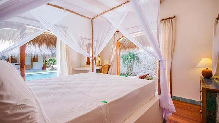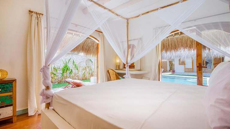 Die Bungalows im Mu Bungalows sind umweltfreundlich gestaltet und verwenden naturrecycelte Materialien. Jeder Bungalow verfügt über Klimaanlage, Ventilatoren und Moskitonetze, um einen angenehmen Aufenthalt zu gewährleisten. Das private Badezimmer ist mit einer Warmwasserdusche ausgestattet.