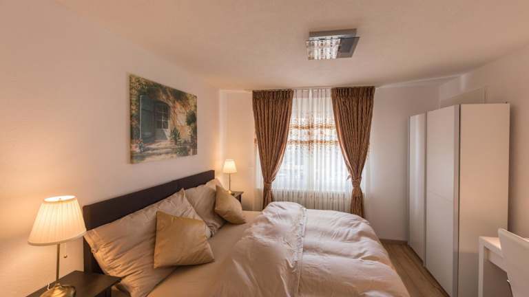 Die Ferienwohnung umfasst eine voll ausgestattete Küche mit Kühlschrank, Geschirrspüler und Ofen. Des Weiteren gibt es ein Wohnzimmer mit Sitz- und Essbereich, zwei Schlafzimmer sowie ein Badezimmer mit Dusche und Badewanne. Handtücher und Bettwäsche werden bereitgestellt.