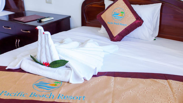 Die Zimmer im Muine Pacific Resort sind klimatisiert und mit Marmorböden ausgestattet. Sie bieten einen herrlichen Blick auf den Garten und verfügen über Annehmlichkeiten wie Kabel-TV, eine Minibar und einen Kleiderschrank. Jedes Zimmer verfügt über ein eigenes Badezimmer mit Dusche. Die Zimmer bieten den Gästen einen komfortablen Rückzugsort nach einem ereignisreichen Tag in Mũi Né.
