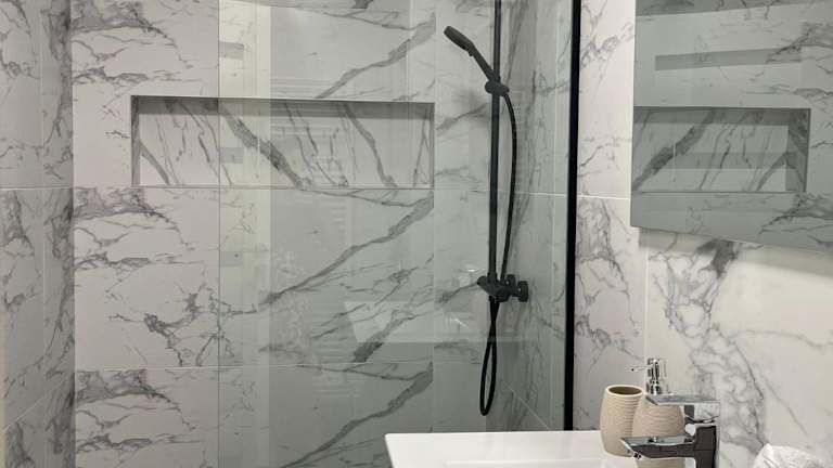 Die Ferienwohnung umfasst zwei Schlafzimmer, ein Wohnzimmer und drei Badezimmer, die mit Duschen ausgestattet sind. Handtücher und Bettwäsche werden zur Verfügung gestellt. Die Unterkunft ist klimatisiert und bietet modernen Komfort.
