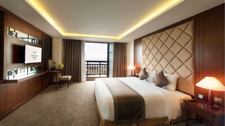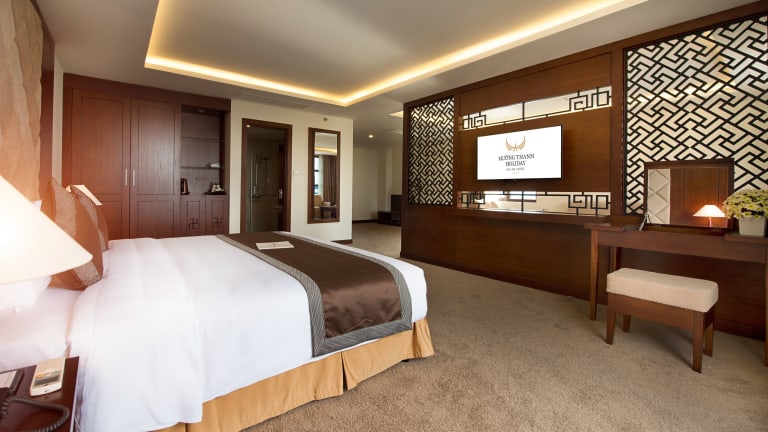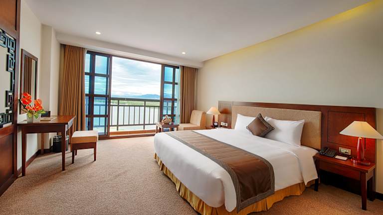 Die Zimmer im Muong Thanh Holiday Hoi An Hotel sind geschmackvoll eingerichtet und bieten modernen Komfort. Jedes Zimmer verfügt über eine Klimaanlage, einen Sitzbereich, einen Flachbild-Kabel-TV und eine Minibar. Einige Zimmer bieten zudem einen Schreibtisch und einen Balkon mit Blick auf den Pool, die Stadt oder den Fluss. Das ensuite Badezimmer ist mit einer Badewanne, einer Dusche, einem Haartrockner und kostenfreien Pflegeprodukten ausgestattet.