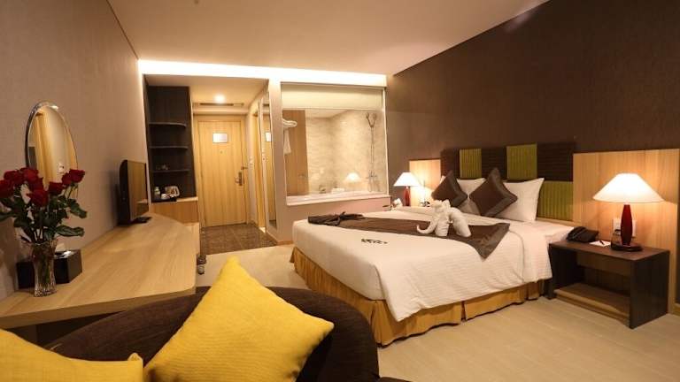 Die Zimmer im Muong Thanh Holiday Muine Hotel sind elegant eingerichtet und verfügen über eine Vielzahl von Annehmlichkeiten, um Ihren Aufenthalt so angenehm wie möglich zu gestalten. Jedes Zimmer ist klimatisiert und verfügt über einen Kleiderschrank, einen Sitzbereich, einen Zimmersafe und einen Flachbild-Kabel-TV. Eine Minibar und ein Wasserkocher sorgen für zusätzlichen Komfort. Das eigene Badezimmer ist mit einer Badewanne, einer Dusche, Bademänteln, einem Haartrockner und kostenfreien Pflegeprodukten ausgestattet.