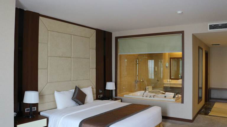 Jedes Zimmer in der Unterkunft ist ausgestattet mit Klimaanlage, einem Sitzbereich, einem Flachbild-TV mit Kabelkanälen, einem Safe sowie einem eigenen Badezimmer mit einem Bidet, kostenlosen Pflegeprodukten und einem Haartrockner. Bettwäsche und Handtücher sind ebenfalls vorhanden.