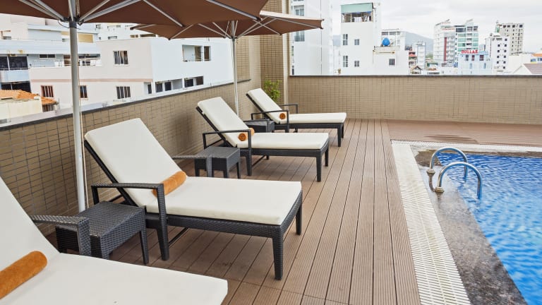 Im Herzen von Nha Trang erwartet Sie das Muong Thanh Luxury Nha Trang Hotel mit einem Außenpool, einem modernen Fitnesscenter und kostenfreiem WLAN. Genießen Sie den Komfort der klimatisierten Zimmer mit Minibar, Flachbild-TV und modernem Badezimmer. Entspannen Sie am Strand, gönnen Sie sich Wellnessanwendungen oder nutzen Sie die Karaokeanlage, die Sauna und das Businesscenter. Das hoteleigene Restaurant bietet eine köstliche Auswahl an lokalen und internationalen Gerichten, während die Bar mit Snacks, einheimischem Bier und erfrischenden Cocktails lockt.