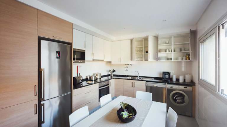 Die Unterkunft verfügt über eine voll ausgestattete Küche mit Kühlschrank, Geschirrspüler, Ofen, Mikrowelle, Toaster, Kaffeemaschine und Wasserkocher.