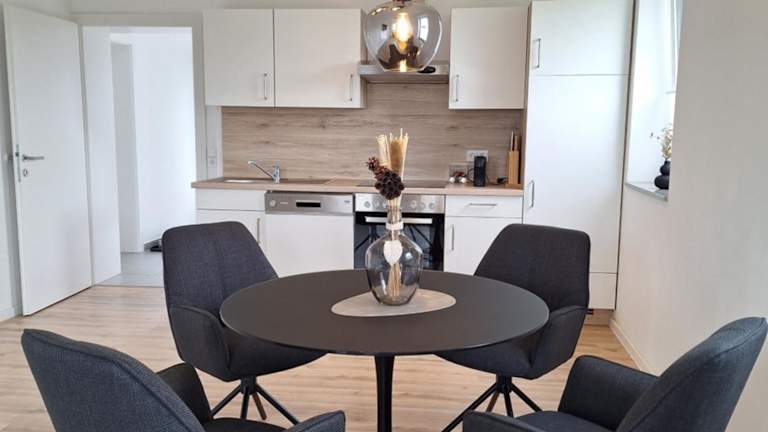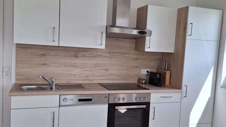 Die Ferienwohnung verfügt über ein Schlafzimmer, ein Wohnzimmer mit einem Flachbild-TV, eine voll ausgestattete Küchenzeile und ein Badezimmer.