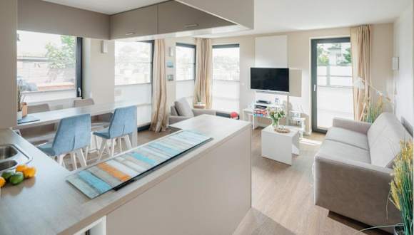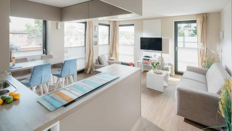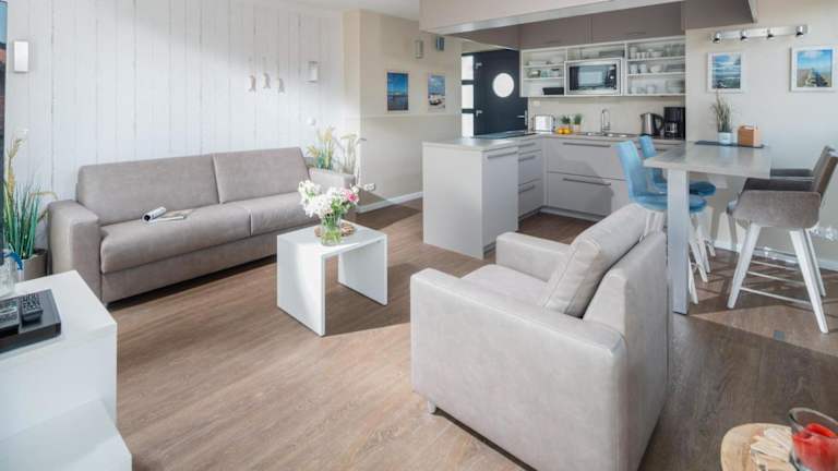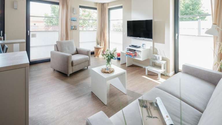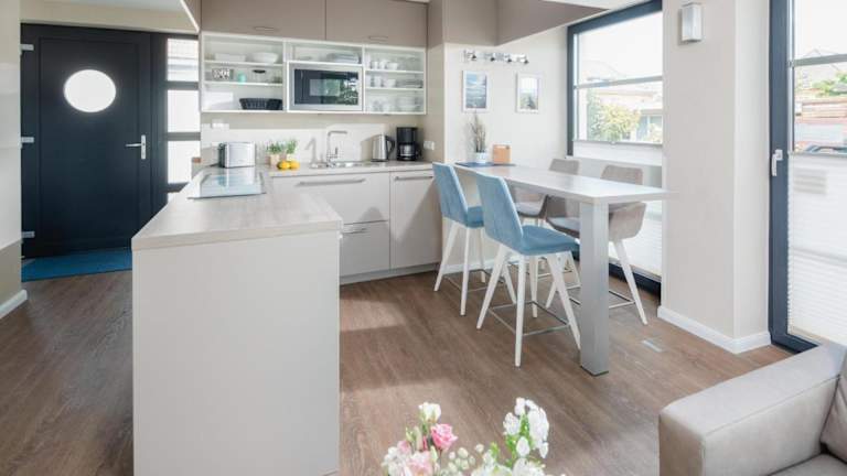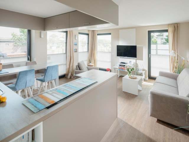 Die Ferienwohnung verfügt über ein Schlafzimmer, ein Wohnzimmer mit TV, eine voll ausgestattete Küche mit Kühlschrank und Geschirrspüler sowie ein Badezimmer, das mit einem Haartrockner ausgestattet ist.