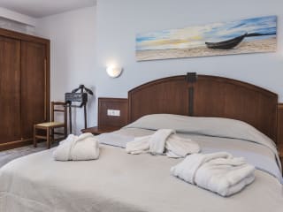 In total 17 Studios completely renovated and reopened in July 2020 located on the ground floor, first or second floor for 2, 3 or 4 persons. STUDIOS FOR 2 PERSONS WITH SIDE SEA VIEW (in total 7) Our newly completely renovated Studios for maximum occupancy 2 persons have approx.25m2 3 Studios for 2 persons are located on the ground floor with terrace, 2 on the first floor and another 2 on the second floor with balcony offering lateral sea view to the Aegean Sea and the landscape of Episkopi. STUDIOS FOR 2 PERSONS WITH DIRECT SEA VIEW (in total 4) Our newly completely renovated Studios for max occupancy 3 persons (2adults & 1child or 3adults) are approx. 30m2 located on the first floor or second floor with balcony offering direct amazing view to the Aegean sea. Extra sofa bed at the disposal for the 3rd pax FAMILY ROOM OPEN PLAN FOR 2-4 PERSONS WITH GARDEN OR SIDE SEA VIEW (in total 6) Our newly completely renovated Family rooms open plan for maximum 4 persons (max 2adults and 2children) are approx. 35m2. The family studios are located on the ground floor with terrace or on the first floor or on the second floor with relaxing limited view to the beach and the landscape of Episkopi. ALL ROOMS HAVE BEEN REVOVATED DURING THE WINTER 2019-2020 AND INCLUDE THE FOLLLOWING FACILITIES • 1 double bed (studios for 2 pax) • 2 single beds and a 3rd sofa extra bed (in studios for 3 pax) • 2 single beds and 2 extra sofa beds (in family rooms for 4pax) • wardrobe • 32’’ flat screen TV with satellite channels, • bath amenities, • towels • terrace or balcony • air condition (free of charge), • Wi-fi internet connection (free of charge), • safe box in the closet (free of charge), • pool towels (free of charge, against deposit), • hair dryer, • beauty mirror, • kitchenette with cooking equipment, • mini fridge, • Filter coffee maker, drying loft on the balcony.
