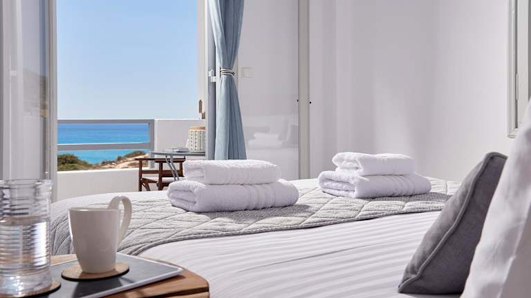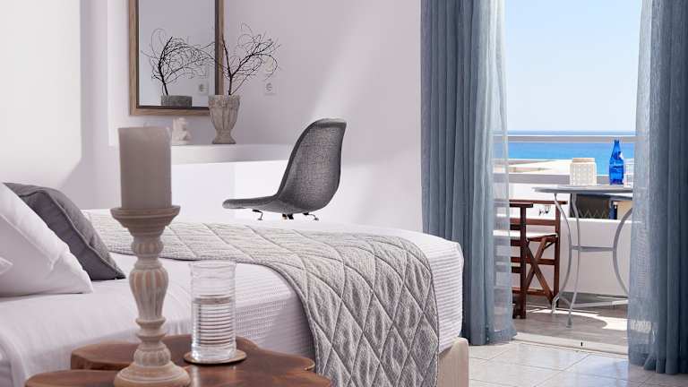 Die Zimmer sind klimatisiert und verfügen über einen Kleiderschrank, einen Flachbild-TV und ein eigenes Bad. Einige Zimmer bieten einen Balkon oder eine Terrasse mit Meerblick. Zur Ausstattung der Zimmer gehört auch ein Kühlschrank sowie Kaffee- und Teezubehör.