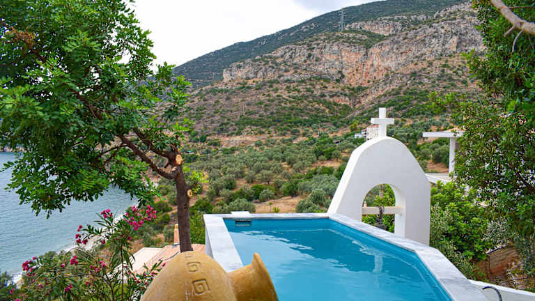 Die Muses Sea Villas bieten einen eigenen Strandbereich, an dem Sie sich entspannen und die Sonne genießen können. Der Garten der Unterkunft ist ebenfalls ein angenehmer Ort, um sich zurückzulehnen und die Natur zu genießen. In der Umgebung gibt es auch verschiedene Möglichkeiten für Freizeitaktivitäten wie Wandern und Wassersport.
