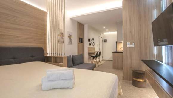 Das Hotel bietet 93 Zimmer, darunter Einzel- und Doppelzimmer sowie Suiten, die auf 7 Etagen verteilt sind. Die Zimmer sind komfortabel eingerichtet und verfügen über Annehmlichkeiten wie Klimaanlage, Heizung, Safe, Minibar und kostenloses WLAN. Ein Balkon oder eine Terrasse gehört ebenfalls zur Ausstattung der meisten Zimmer.