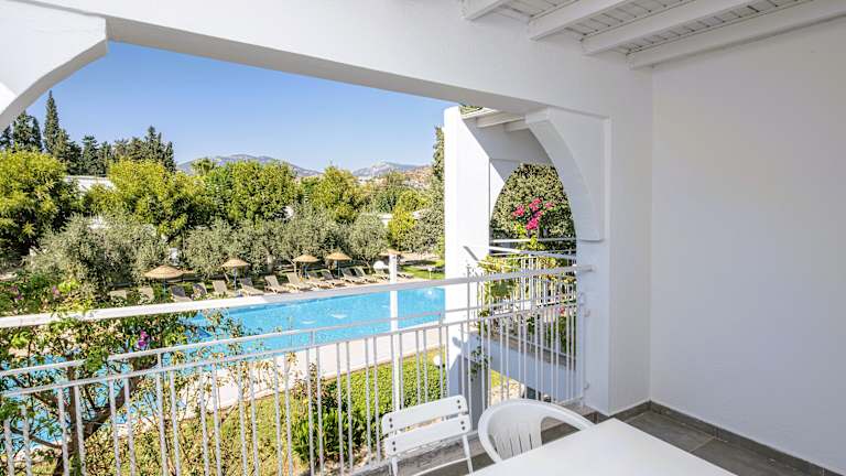 Die Zimmer verfügen in der Regel über Balkone, die zum Verweilen einladen. Zu den Annehmlichkeiten gehören ein Doppelbett oder ein Sofabett, Kühlschrank, Mikrowelle und ein Bügelset. Weiterhin sind ein Telefon, Sat-TV und Wi-Fi (ohne Gebühr) vorhanden. In den Badezimmern ist ein Haartrockner verfügbar. Rollstuhlgerechte Zimmer sind ebenfalls buchbar.
