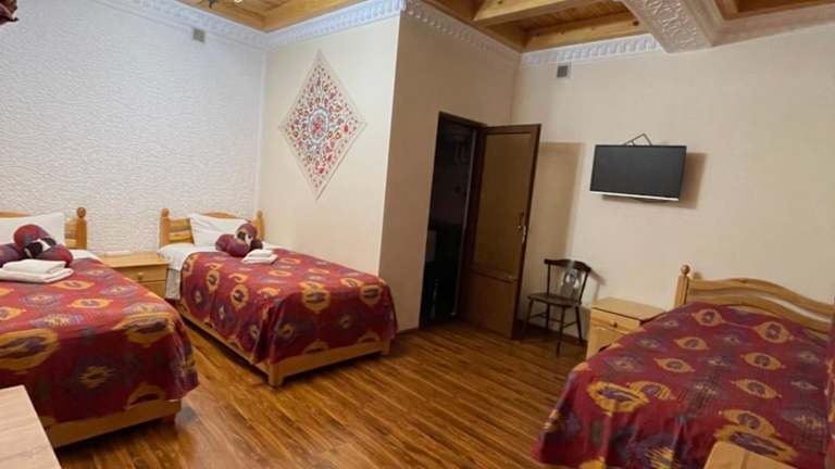 Das Mutara Bukhara ist eine ideale Unterkunft für Reisende, die Buchara erkunden möchten. Mit kostenfreiem WLAN, einer Terrasse und kostenfreien Privatparkplätzen bietet die Pension allen Gästen einen angenehmen Aufenthalt. Die klimatisierten Zimmer sind komfortabel ausgestattet und verfügen über einen Flachbild-TV, ein eigenes Bad und einen Balkon mit Blick auf die Stadt. Das freundliche und hilfsbereite Personal steht Ihnen rund um die Uhr zur Verfügung. Der internationale Flughafen Buchara ist nur 6 km entfernt und ein kostenpflichtiger Flughafentransfer wird angeboten.