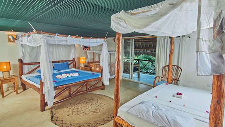 Die Unterkunft im Mvuvi besteht aus strohgedeckten Bungalows, die von einem üppigen Garten umgeben sind. Die Bungalows bestehen aus natürlichen Materialien und vermitteln ein authentisches und entspanntes Ambiente. Jede Unterkunft verfügt über ein Schlafzimmer, einen gemütlichen Sitzbereich und einen Balkon, von dem aus Sie den Blick auf den Garten genießen können. Die Betten sind mit Moskitonetzen ausgestattet, um Ihnen einen ungestörten Schlaf zu ermöglichen. WLAN steht in den öffentlichen Bereichen kostenlos zur Verfügung.