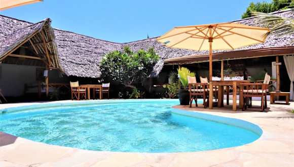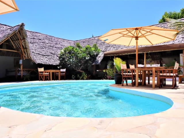 Das Mvuvi Lodge ist eine gemütliche Unterkunft in Watamu, nur 200 m vom weißen Sandstrand entfernt. Die strohgedeckten Bungalows und der üppige Garten vermitteln ein naturnahes und entspanntes Ambiente. Das Restaurant, die Gemeinschaftslounge und das Spielezimmer sorgen für Unterhaltung und die Möglichkeit, sich mit anderen Gästen auszutauschen. Das Mvuvi bietet auch Aktivitäten wie Golfen und Angeln an. Besonders interessant ist das Kite House, in dem Sie Kitesurfausrüstung mieten und Kurse belegen können. Die Unterkunft liegt in der Nähe des Watamu Marine National Park und der Gede Ruinen, die beide einen Besuch wert sind.