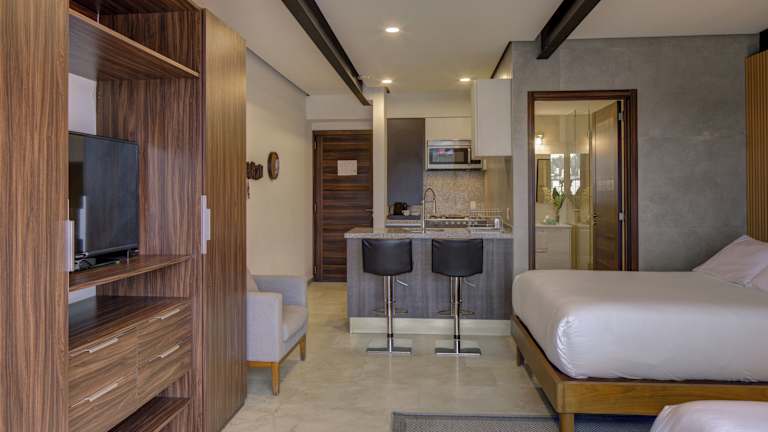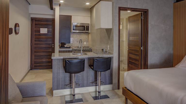 Die Zimmer im MX Grand Suites sind geräumig und bieten eine voll ausgestattete Küche mit Esstisch. Jedes Zimmer verfügt über einen Flachbild-Kabel-TV und ein eigenes Bad mit Dusche, Haartrockner und Hausschuhen. Einige Zimmer verfügen auch über einen Sitzbereich und einen Balkon. Rollstuhlgerechte Zimmer sind ebenfalls verfügbar.