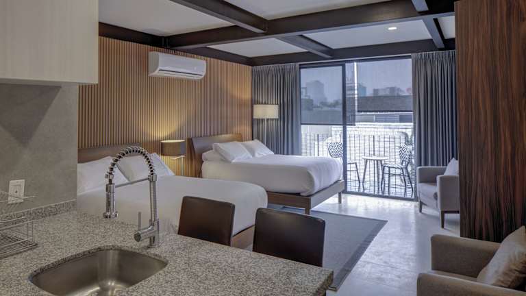 Das MX Grand Suites in Mexiko-Stadt ist eine ideale Unterkunft für Reisende, die eine zentrale Lage und komfortable Ausstattung suchen. Mit kostenfreiem WLAN und Parkplätzen bietet das Hotel den Gästen einen angenehmen Aufenthalt. Die geräumigen Zimmer verfügen über eine voll ausgestattete Küche und ein eigenes Bad. Entspannen Sie auf der Terrasse oder erkunden Sie die nahegelegenen Sehenswürdigkeiten wie die Säule mit dem Engel der Unabhängigkeit oder das Schloss Chapultepec.