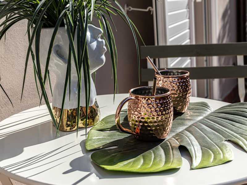 Die Ferienwohnung ist mit einer Küche ausgestattet, die einen Kühlschrank, einen Ofen, eine Mikrowelle, eine Kaffeemaschine und einen Wasserkocher umfasst.