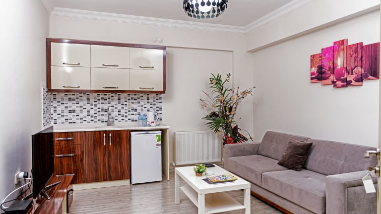 Das My Sun Hotel in Izmir bietet eine attraktive Lage und eine komfortable Unterkunft mit Annehmlichkeiten wie kostenfreiem WLAN und einer Gemeinschaftslounge. Die Zimmer sind mit modernen Annehmlichkeiten wie Klimaanlage, Flachbild-TV und Minibar ausgestattet. Einige Zimmer verfügen auch über eine Küche mit Kühlschrank, Mikrowelle und Kochfeld. Entspannen Sie im Whirlpool des Aparthotels und erkunden Sie die nahegelegenen Sehenswürdigkeiten wie den Uhrturm von Izmir und das Atatürk-Museum.