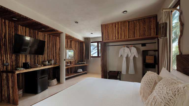 Ein wirklich schönes, etwas vom Rummel in Tulum abgelegenes Hotel. Sehr familiär, nur 9 Villas/Bungalows. Man hat sich sehr zuvorkommend um uns gekümmert. Das Algenproblem wurde täglich beseitigt... muss man halt mit leben. Aber es gab auch Tage mit kristallklarem Wasser und komplett algenfreiem Strand. Whirlpool im 1. Stock mit Blick auf den Ozean, was gibt es schöneres?
