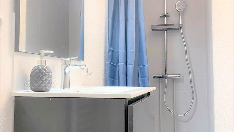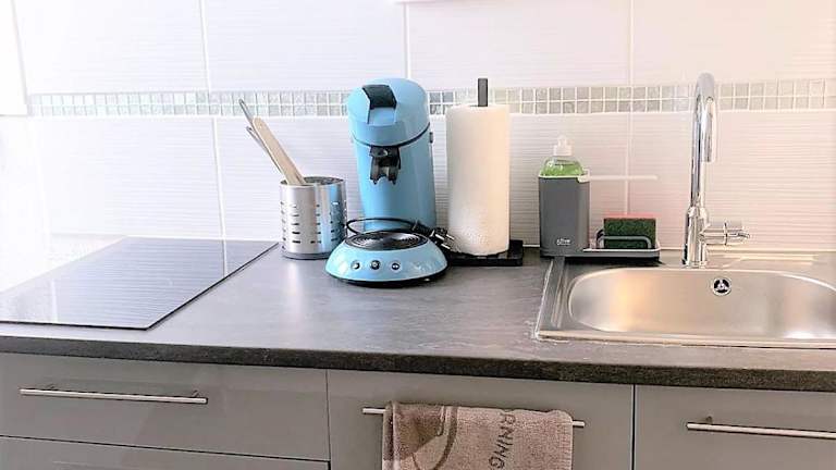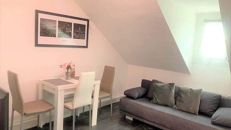 Die Ferienwohnung besitzt ein Schlafzimmer, ein Wohnzimmer und eine voll ausgestattete Küche mit Kühlschrank und Kaffeemaschine. Das Badezimmer ist mit einer Dusche und kostenlosen Pflegeprodukten ausgestattet. Handtücher und Bettwäsche sind vorhanden. Die Wohnung bietet Stadtblick.