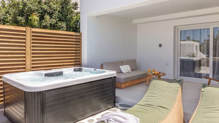 Mykonos Lagom bietet Übernachtungsmöglichkeiten mit kostenlosem WLAN und Klimaanlage. Die Unterkunft verfügt über einen Garten mit einer Terrasse sowie einen Whirlpool.