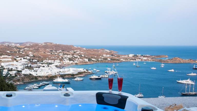 Das Hotel befindet sich in einer günstigen Lage in der Nähe des Strandes von Ornos und ist auch vom Flughafen Mykonos Intl. leicht zu erreichen. In der Umgebung gibt es zahlreiche Sehenswürdigkeiten, darunter die Windmühlen von Mykonos und das Ägäische Schifffahrtsmuseum.