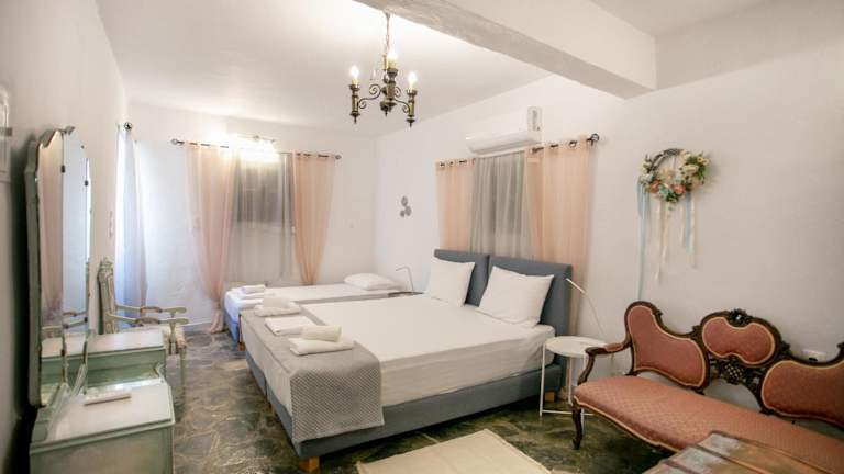 Die Unterkunft Mylos villa Mani ist eine moderne Villa mit Meerblick, ausgestattet mit Annehmlichkeiten, die einen komfortablen Aufenthalt ermöglichen.