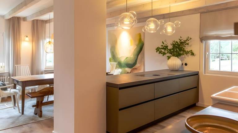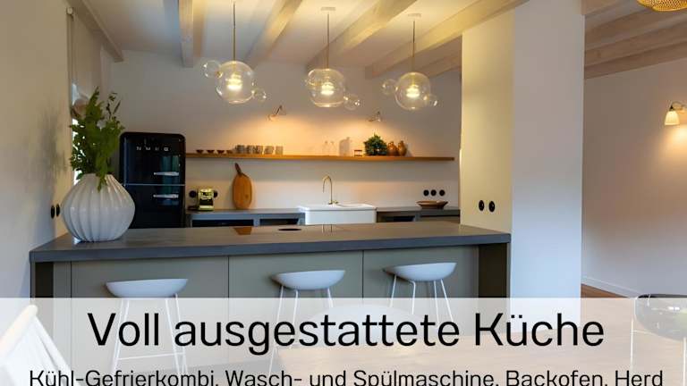 Es gibt Informationen zu einer voll ausgestatteten Küche in der Unterkunft, die mit einem Kühlschrank, einem Geschirrspüler, einer Waschmaschine, einem Ofen und einer Herdplatte ausgestattet ist. Informationen zu weiteren Verpflegungsmöglichkeiten liegen nicht vor.