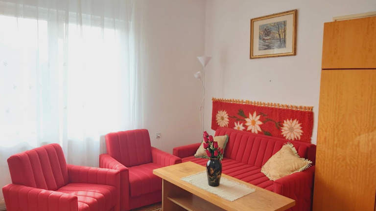 Das Nagyiék háza / Granny's House in Esztergom ist ein charmantes Apartment, das Ihnen einen angenehmen Aufenthalt bietet. Mit seinem schönen Garten, der Gemeinschaftslounge und der Terrasse können Sie sich entspannen und die ruhige Umgebung genießen. Das kostenfreie WLAN ermöglicht es Ihnen, mit Ihren Lieben in Verbindung zu bleiben, während Sie den Gartenblick bewundern. Das Apartment verfügt über 2 Schlafzimmer, ein gemütliches Wohnzimmer und eine voll ausgestattete Küche. Die beiden Badezimmer bieten Ihnen zusätzlichen Komfort. Kostenlose Parkplätze stehen Ihnen zur Verfügung. In der Umgebung können Sie verschiedene Aktivitäten wie Wandern, Radfahren und Darts ausüben. Besuchen Sie den japanischen Garten der Margareteninsel oder die Kettenbrücke, die beide in der Nähe liegen. Der internationale Flughafen Budapest Liszt Ferenc ist nur 60 km entfernt.