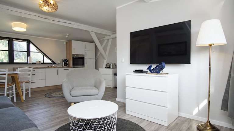 Die Ferienwohnung verfügt über zwei Schlafzimmer, einen TV und eine gut ausgestattete Küche mit Kühlschrank und Geschirrspüler. Zudem steht ein Badezimmer mit Dusche zur Verfügung.