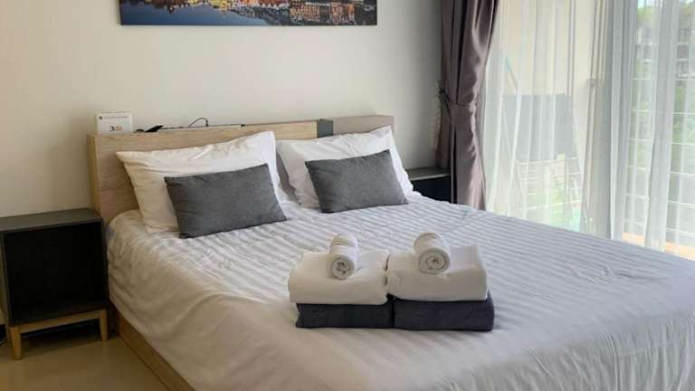 Nai Harn NBC 1 BR ist eine Ferienwohnung mit einem eigenen Pool, die durch moderne Annehmlichkeiten und eine praktische Lage besticht.