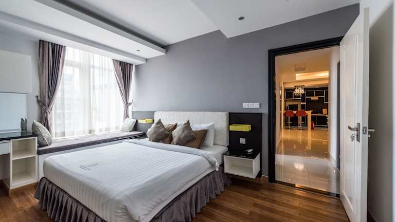 Die Zimmer sind mit einem Wohnbereich, einer Kochnische sowie einem Badezimmer ausgestattet. Wichtige Ausstattungsmerkmale sind eine Klimaanlage, Heizung, ein Safe, eine Minibar, ein TV-Gerät mit Satelliten-/Kabelempfang und kostenfreies WLAN. Jedes Zimmer bietet zudem einen Balkon oder eine Terrasse mit Stadtblick und verschiedene Badezimmerannehmlichkeiten wie einen Haartrockner.