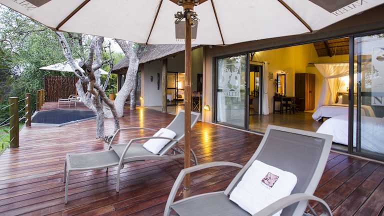 Die Wohneinheiten in den Naledi Lodges bieten einen herrlichen Ausblick auf den Pool oder die Berge. Alle Zimmer sind klimatisiert und verfügen über einen Safe, einen Ventilator sowie Kaffee- und Teezubehör. Einige Zimmer verfügen auch über einen separaten Sitzbereich und einen eigenen Pool für zusätzlichen Komfort und Privatsphäre.