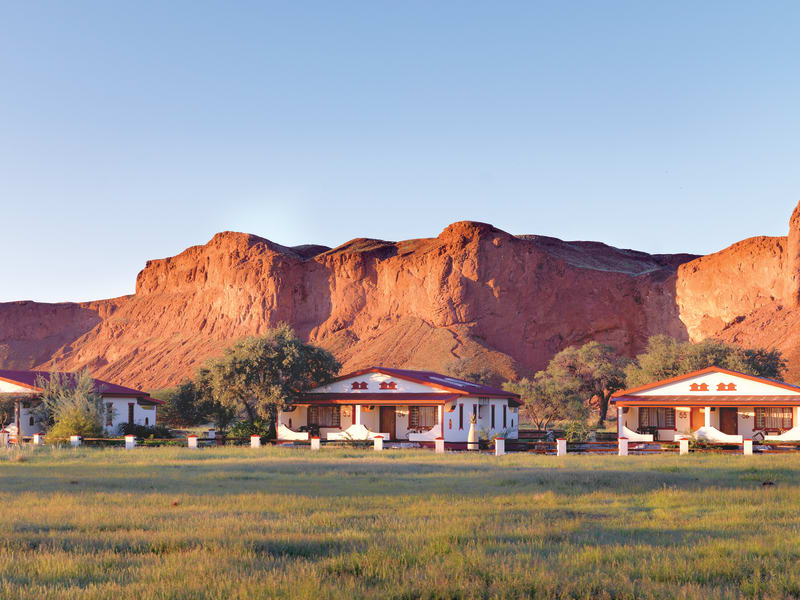 Direkt am Fuße der ‘versteinerten’ Dünen der Ur-Namib steht die Namib Desert Lodge. Nur 60 km nördlich von Sesriem, dem Eingangstor zum berühmten Sossusvlei, und nicht weit von der Straße gelegen, ist die Lodge idealer Ausgangspunkt für einen Ausflug zu den höchsten Dünen der Welt. 60 Zimmer mit Bad garantieren einen angenehmen Aufenthalt. Ein Restaurant mit Bar, eine herrliche Terrasse mit Aussicht auf die versteinerten Dünen sowie zwei Schwimmbecken laden zum Entspannen ein. Genießen Sie nach Sonnenuntergang den Anblick der Oryxantilopen und Springböcke an der beleuchteten Wasserstelle. Für Zelturlauber gibt es schattige Plätze unter Akazien am Ufer eines Trockenflusses.