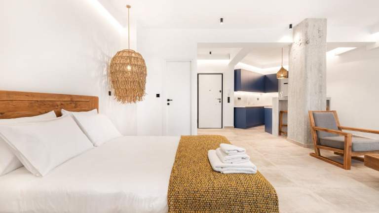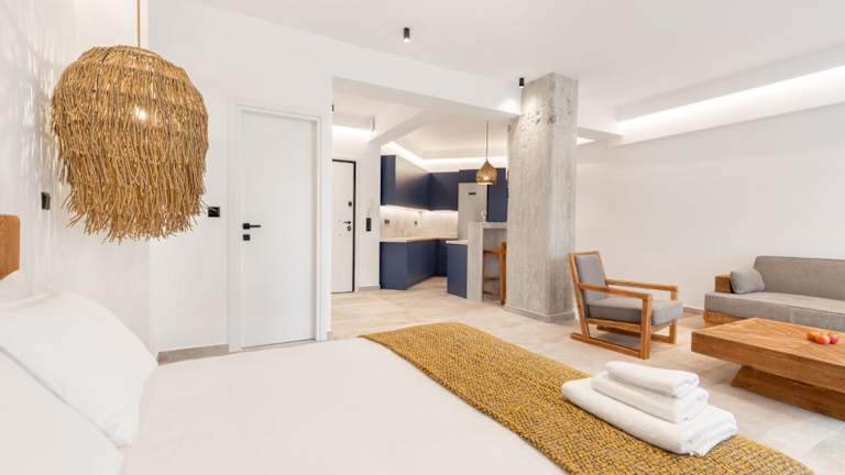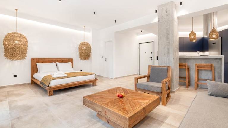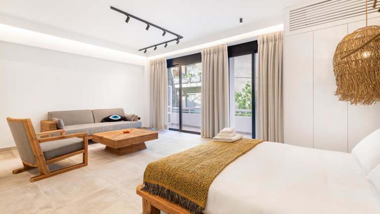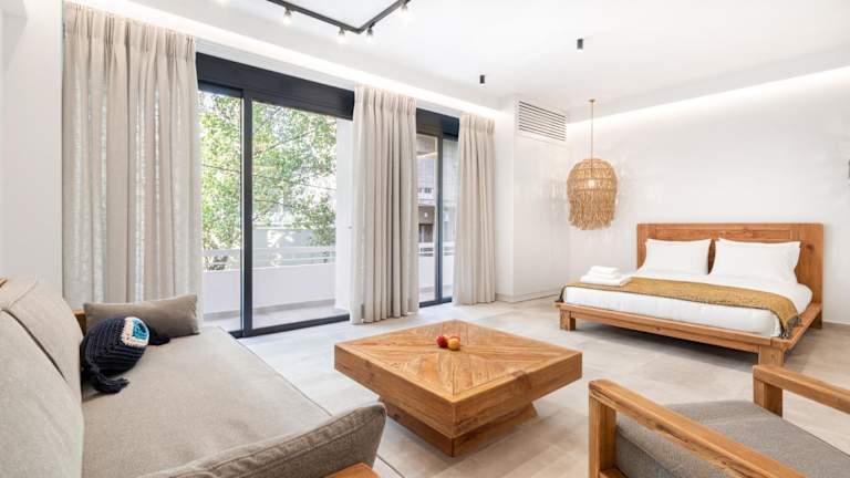 Die Zimmer in Nana's Residence bieten eine angenehme Ausstattung mit Annehmlichkeiten wie einem Kühlschrank und einer Kaffeemaschine. Gäste haben direkten Zugang zu einem Balkon und einer Terrasse.