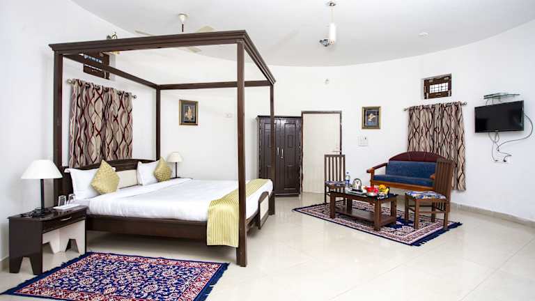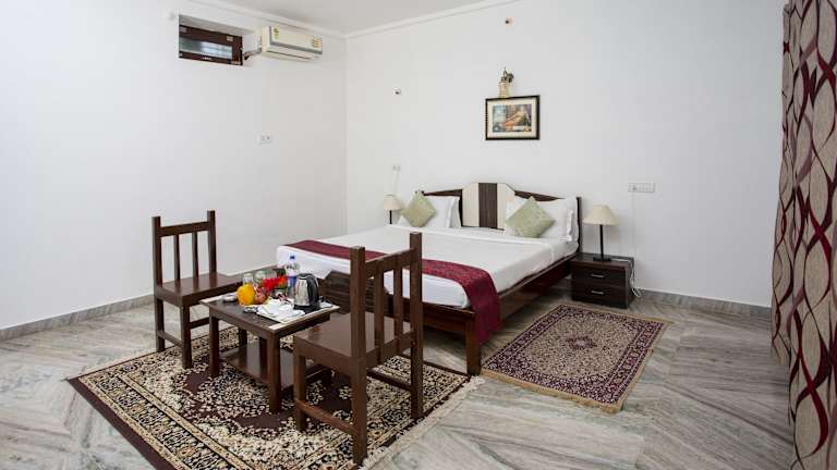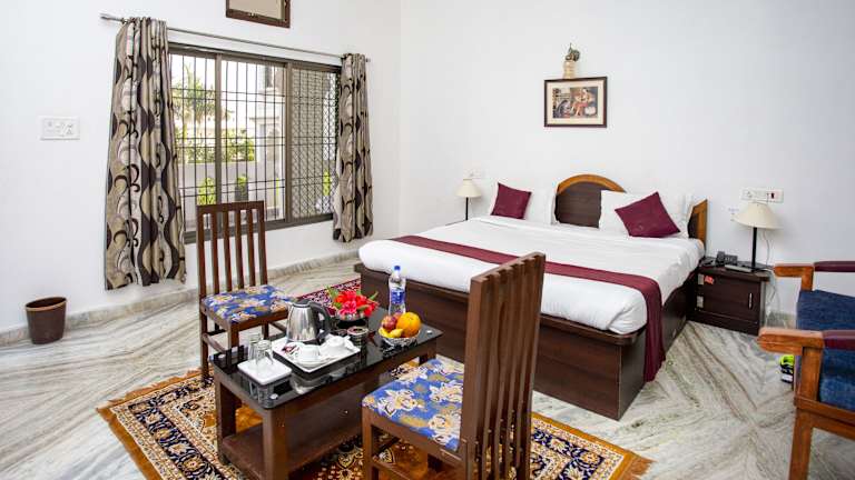 Die Zimmer im Narayan Niwas Resort sind ausgestattet mit einem Schreibtisch, Klimaanlage, Flachbild-TV, Bettwäsche und einem Balkon mit Bergblick. Einige Zimmer bieten zudem Poolblick und einen gemütlichen Sitzbereich.