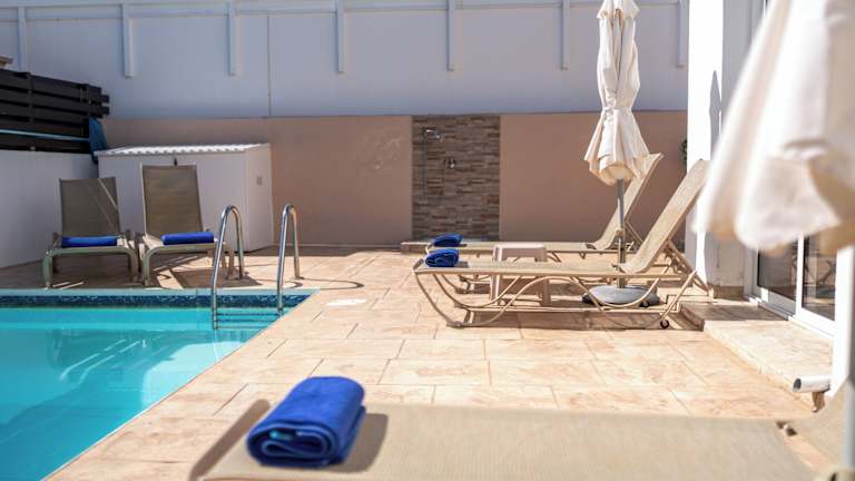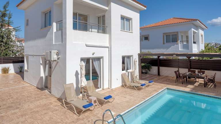 Narcissos Villa 3 ist eine freistehende Villa mit eigenem Pool, Garten und einer Terrasse. Sie bietet kostenfreies WLAN sowie kostenlose Privatparkplätze. Die Villa ist klimatisiert und verfügt über 3 Schlafzimmer, ein Wohnzimmer sowie eine voll ausgestattete Küche, die mit einem Kühlschrank und einer Kaffeemaschine ausgestattet ist. Es stehen drei Badezimmer mit Dusche und kostenlosen Pflegeprodukten zur Verfügung.