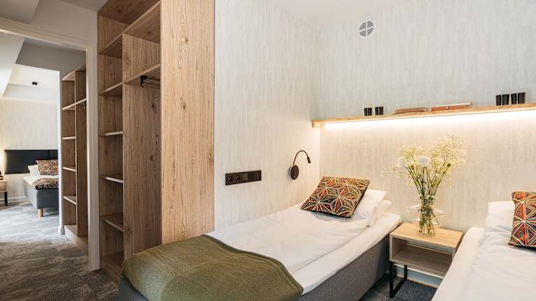 Die Zimmer im Narusa Leśna Przystań sind geräumig und modern eingerichtet. Jedes Zimmer verfügt über ein eigenes Bad mit Dusche, Klimaanlage, Flachbild-TV und Kühlschrank. Einige Zimmer verfügen auch über eine voll ausgestattete Küche mit Geschirrspüler, Minibar und Kochfeld.