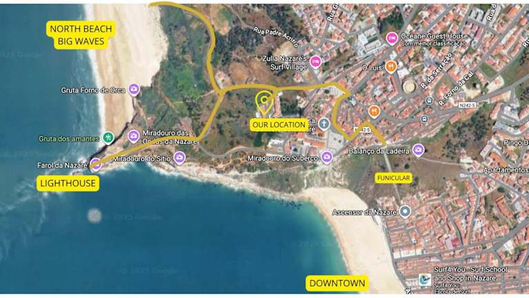 Die Unterkunft befindet sich in der Rua das Dunas in Nazaré, in der Nähe des Strandes Nazare, etwa 700 Meter entfernt. Attraktionen in der Umgebung sind das Kloster von Alcobaca, 17 km entfernt, und die Burg von Óbidos, die 42 km entfernt liegt. Der nächstgelegene Flughafen ist der Humberto Delgado Flughafen in Lissabon, etwa 115 km entfernt.