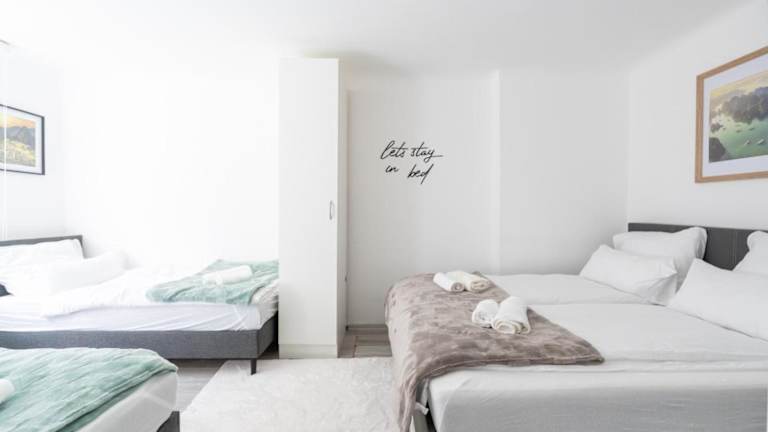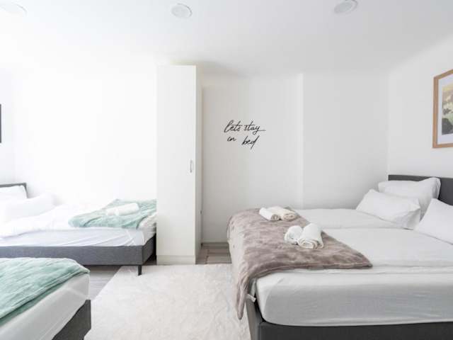Das Apartment umfasst ein Wohnzimmer, ein Schlafzimmer sowie ein Badezimmer mit Badewanne. Zur Ausstattung gehören Handtücher, Bettwäsche und eine Spielekonsole. Die Zimmer sind schallisoliert, und die Unterkunft umfasst Familienzimmer.
