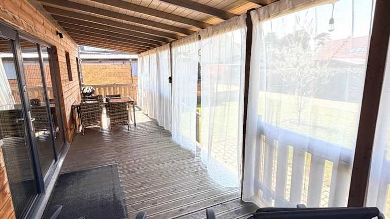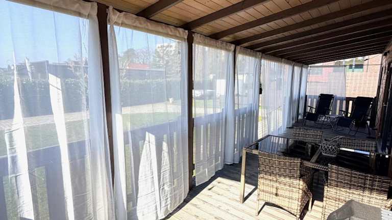 Das Ferienhaus verfügt über 2 Schlafzimmer, ein gemütliches Wohnzimmer und eine voll ausgestattete Küche mit Kühlschrank und Kaffeemaschine. Das Badezimmer ist mit einer Dusche und einem Haartrockner ausgestattet. Handtücher und Bettwäsche werden gestellt, sodass Sie sich um nichts kümmern müssen. Genießen Sie den Blick auf den Garten von der Terrasse oder der Veranda aus.